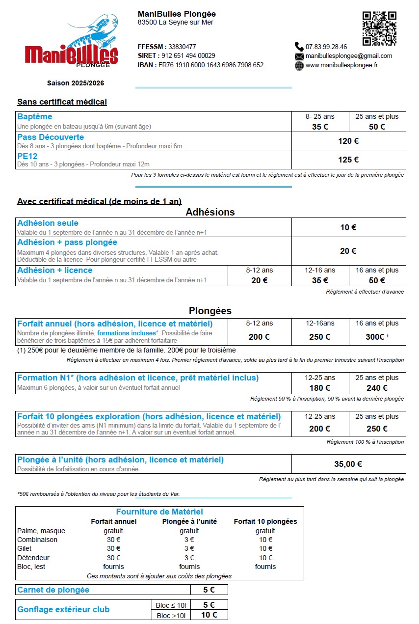 Nos tarifs